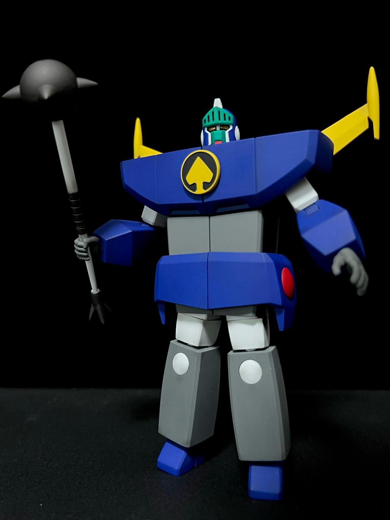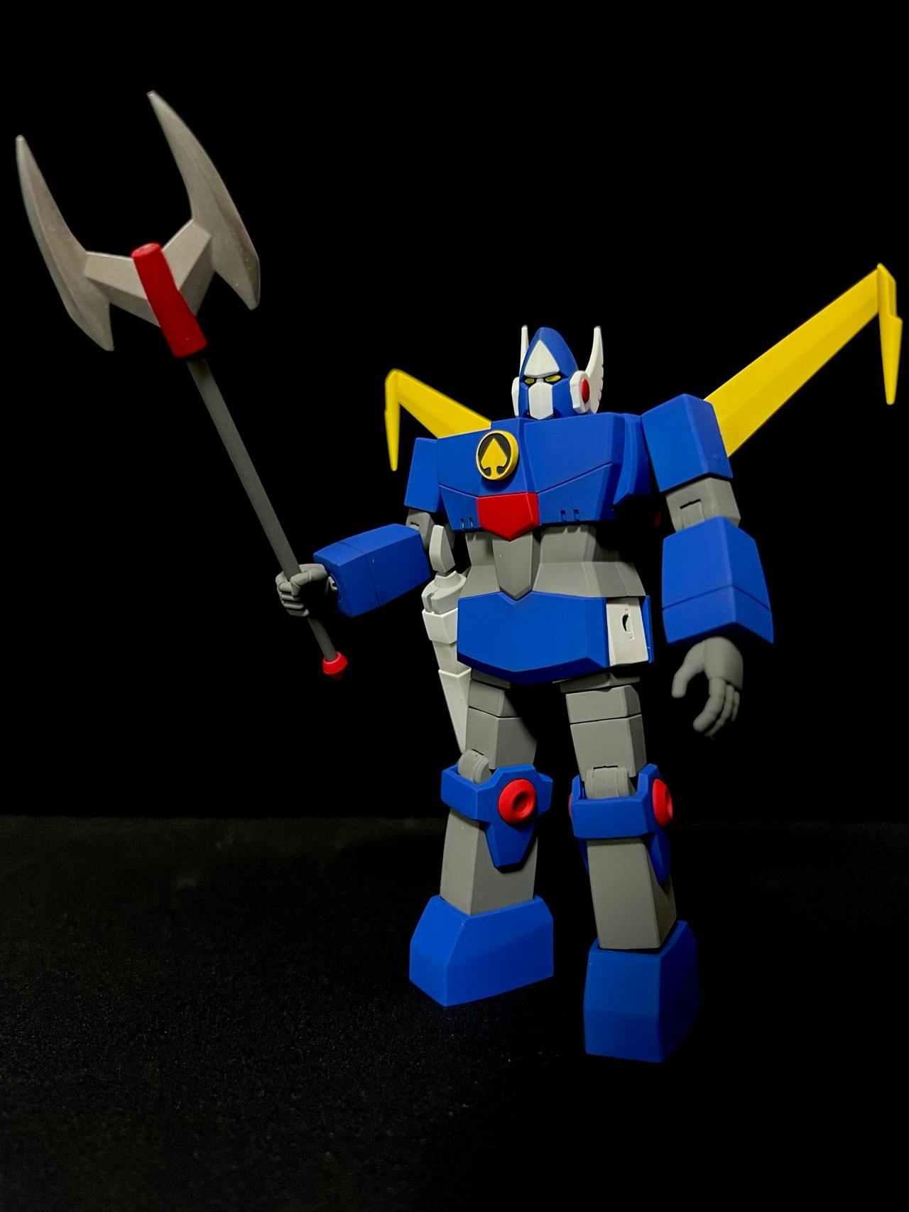 アオイダー。最もギミックの詰まったデューク・スケード(スケさん)の搭乗ロボ。三体中唯一、槍と銃で2種の武器が付属。
